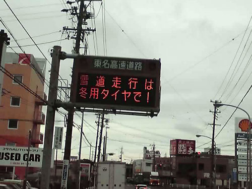 全線高速で行くけど途中で雪の案内板が。
