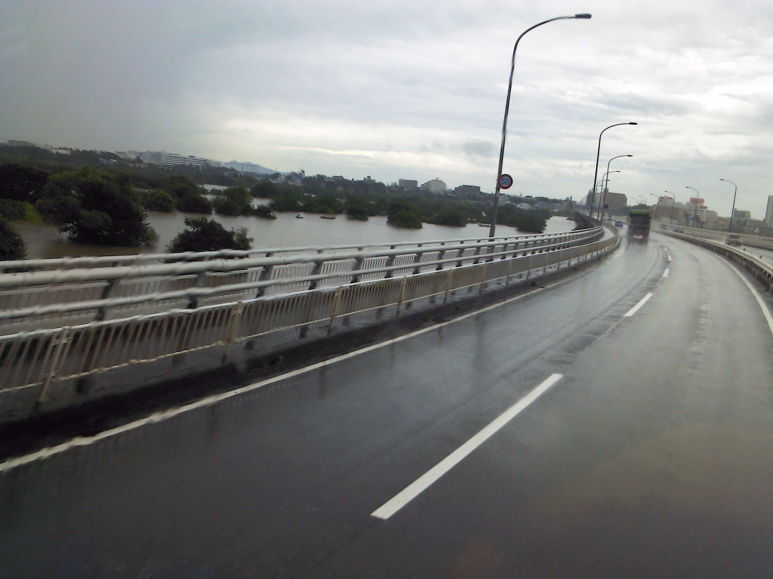 利根川の水位が上がりゴルフ場が水没。