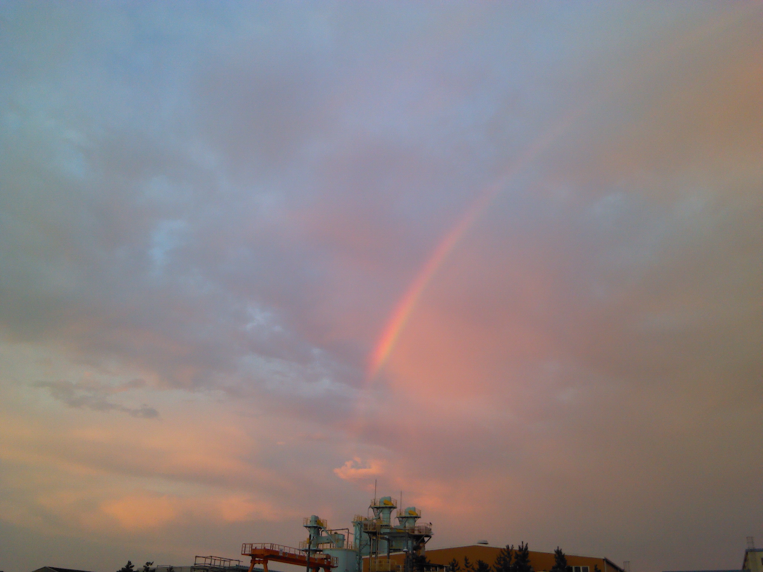 明け方、会社に戻ると止んで虹。