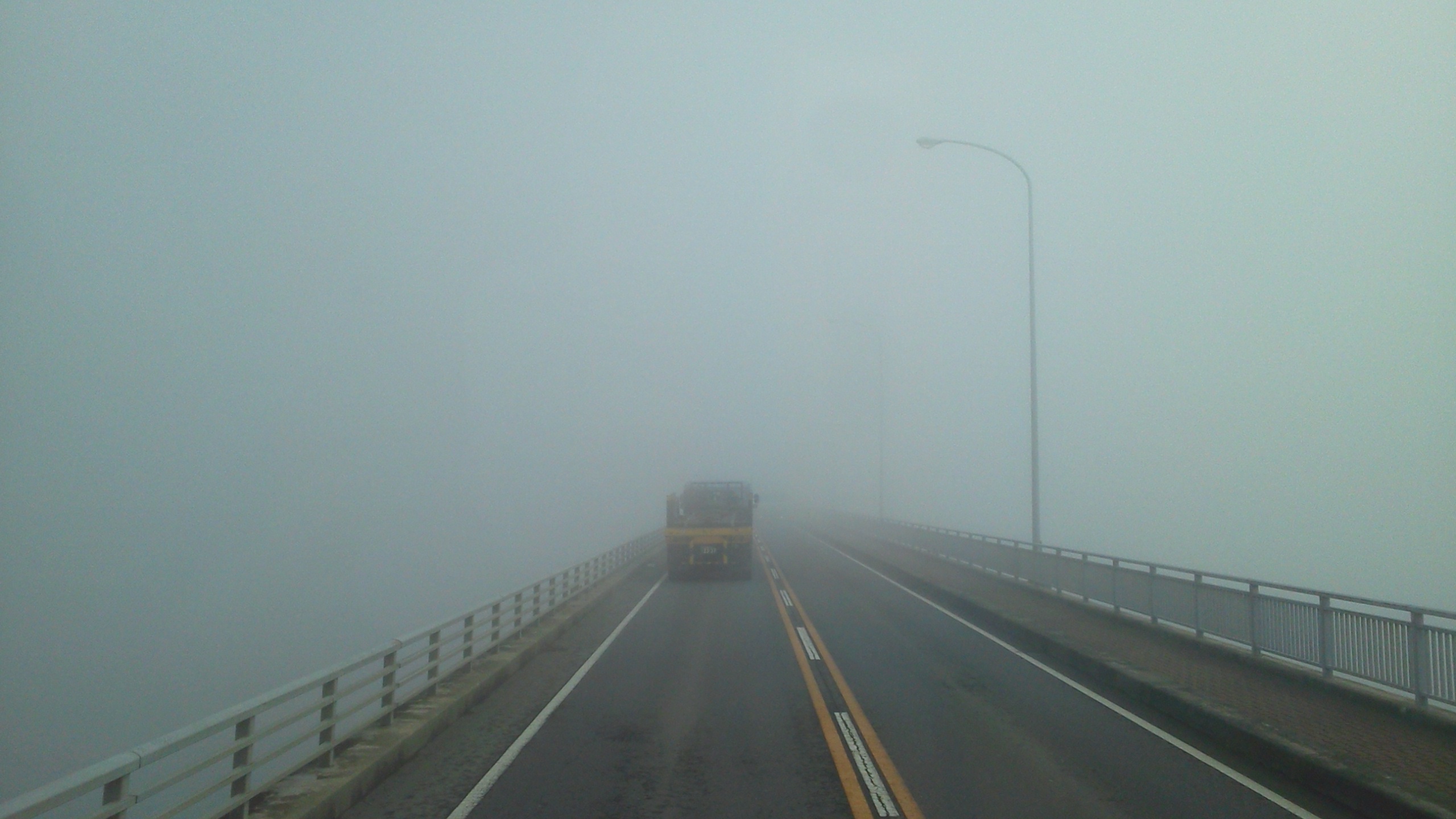 行き道は霧がすごくて視界が悪い。