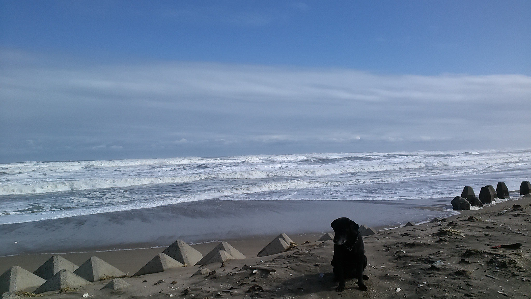 午後から海へ散歩に行くとフラット。