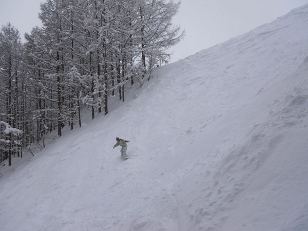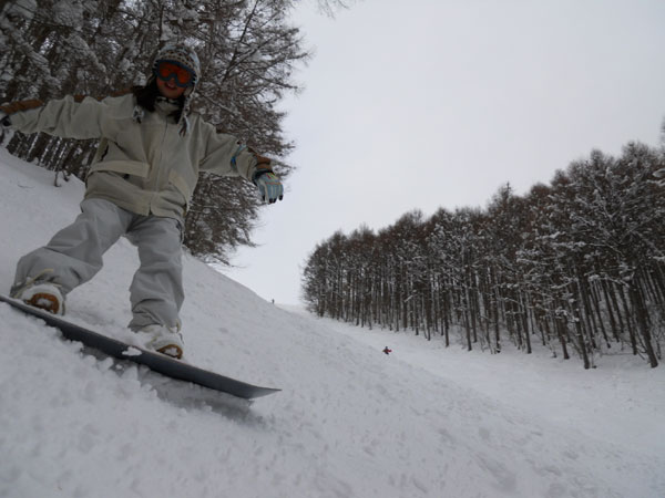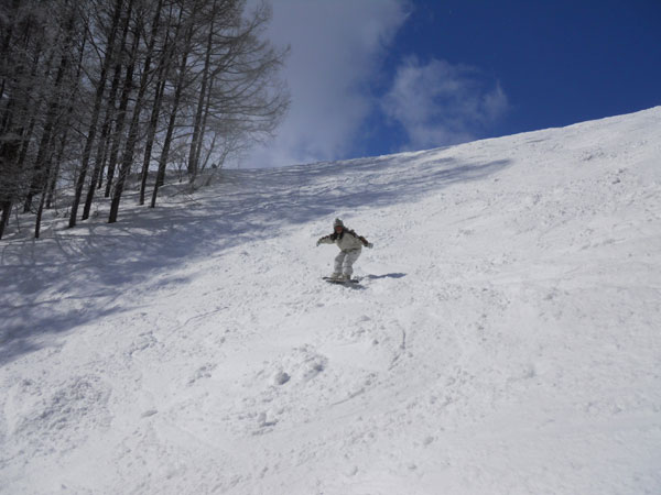 少し圧雪されてるコースだけを選択。