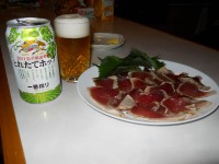 風呂で体を温め食事までは350mlを2本。