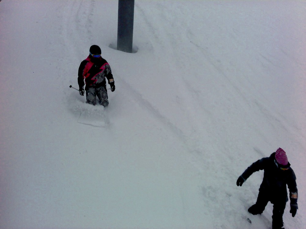 滑ってる人は膝まで埋まり