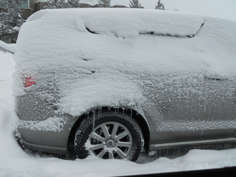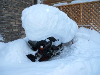 夏には気持ちいだろうバイクも雪が山盛り。