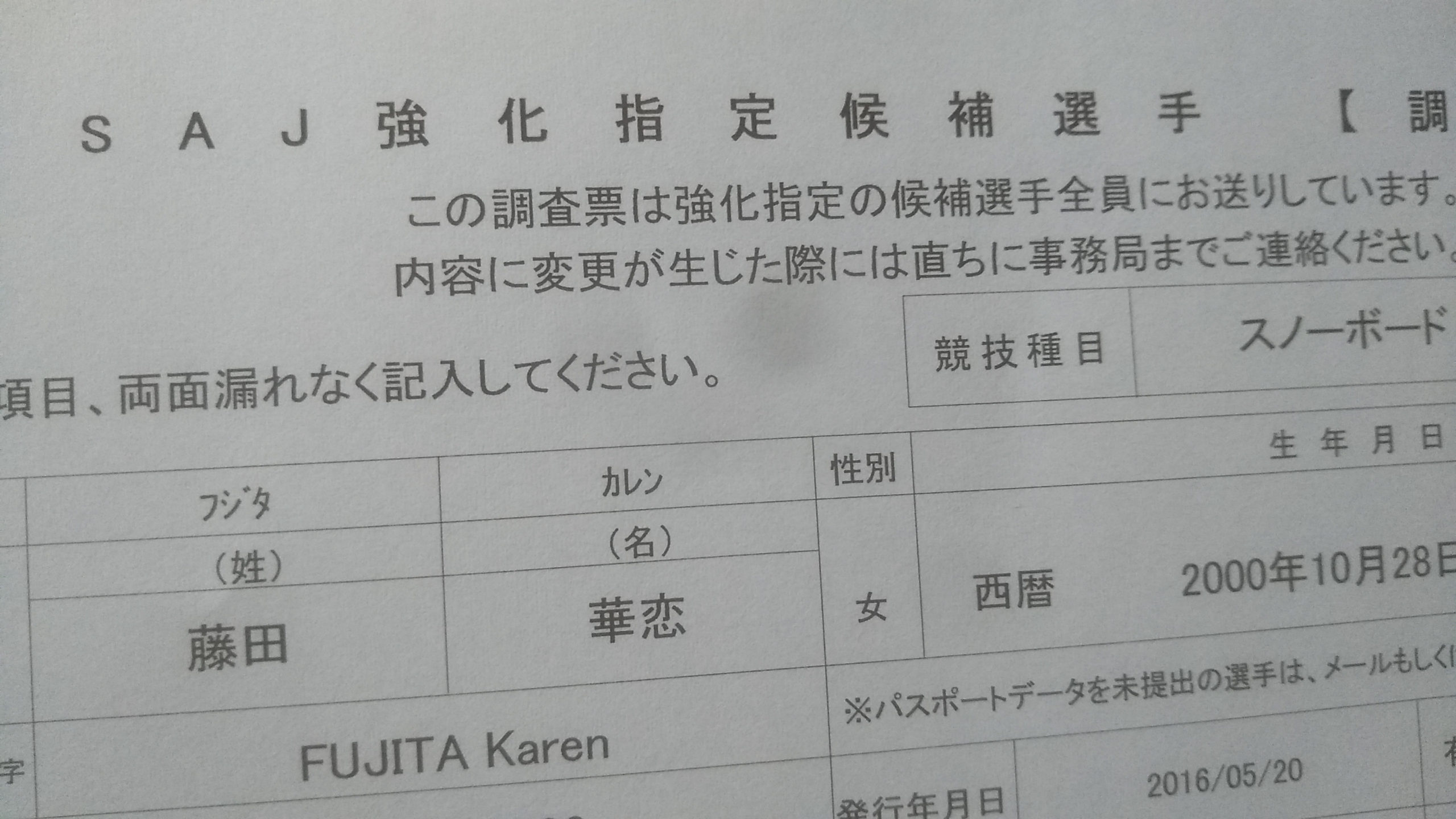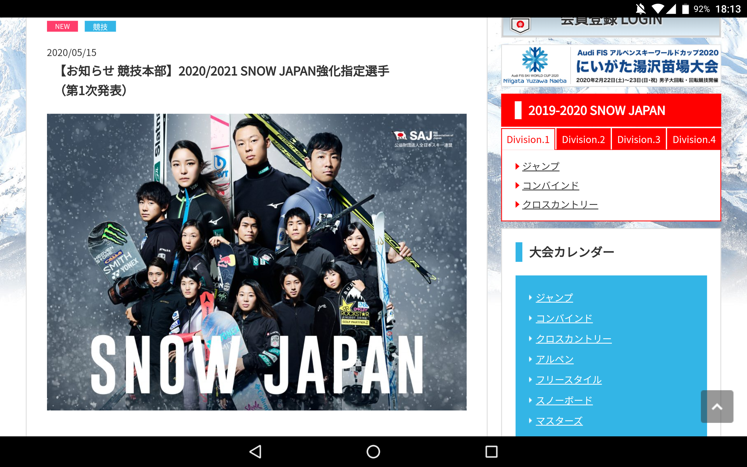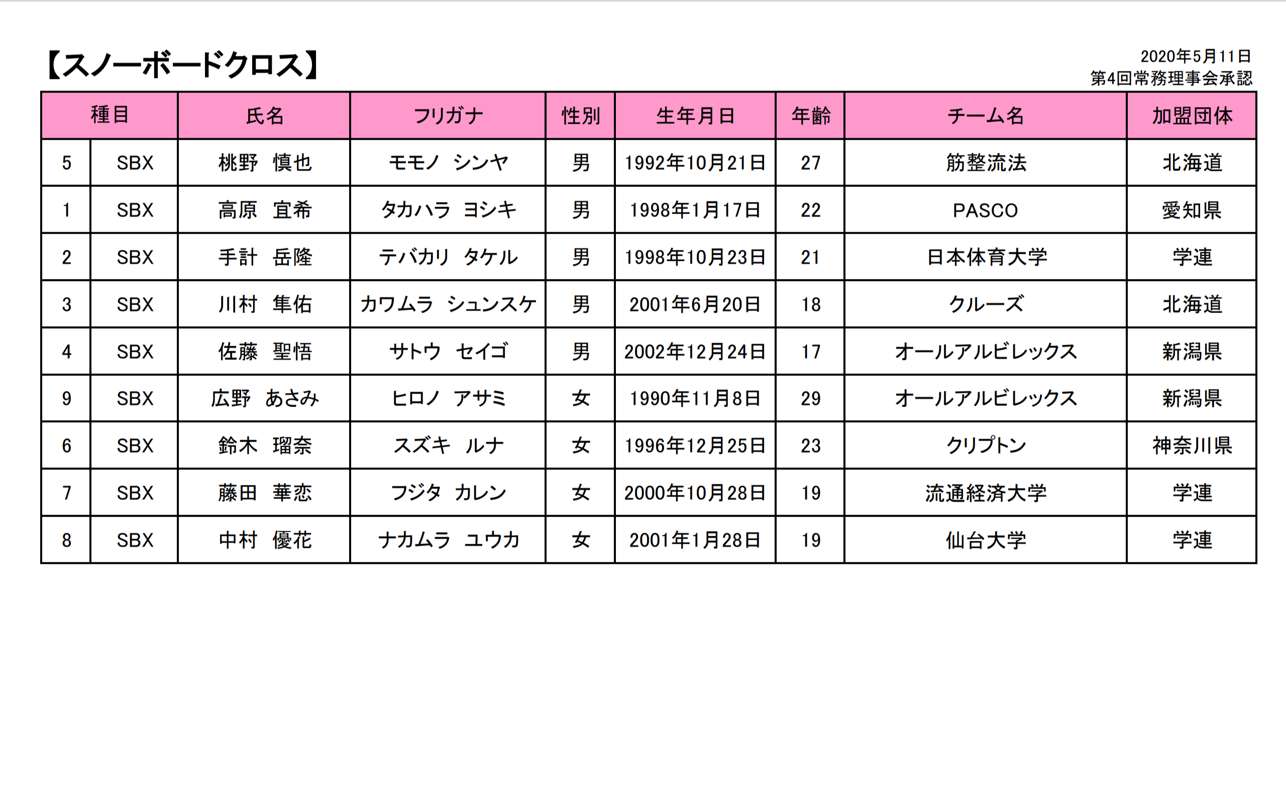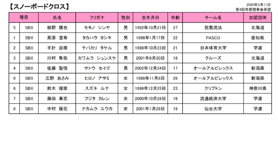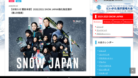 【お知らせ 競技本部】2020/2021 SNOW JAPAN強化指定選手