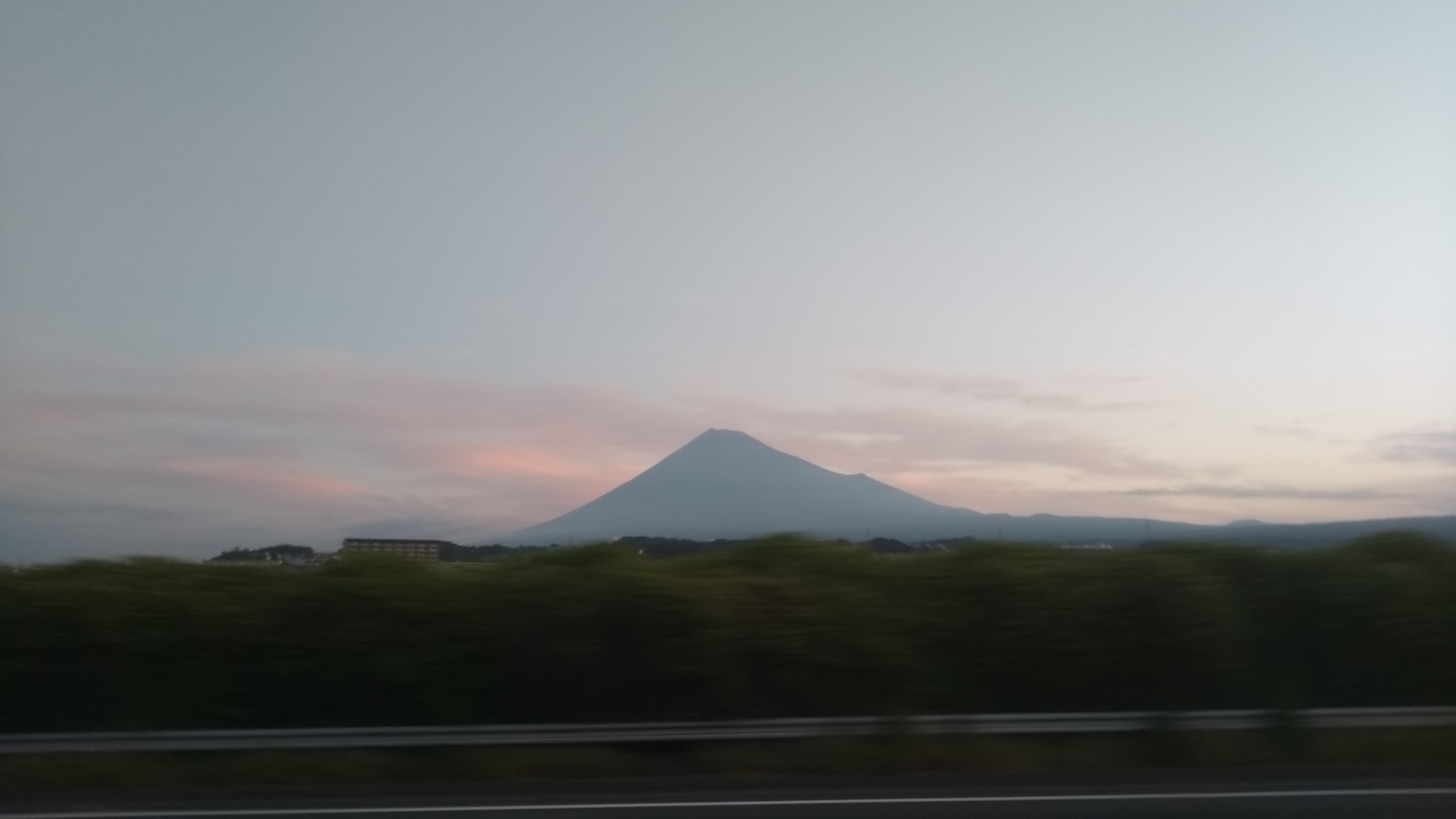 明るくなり始めた空に富士山。