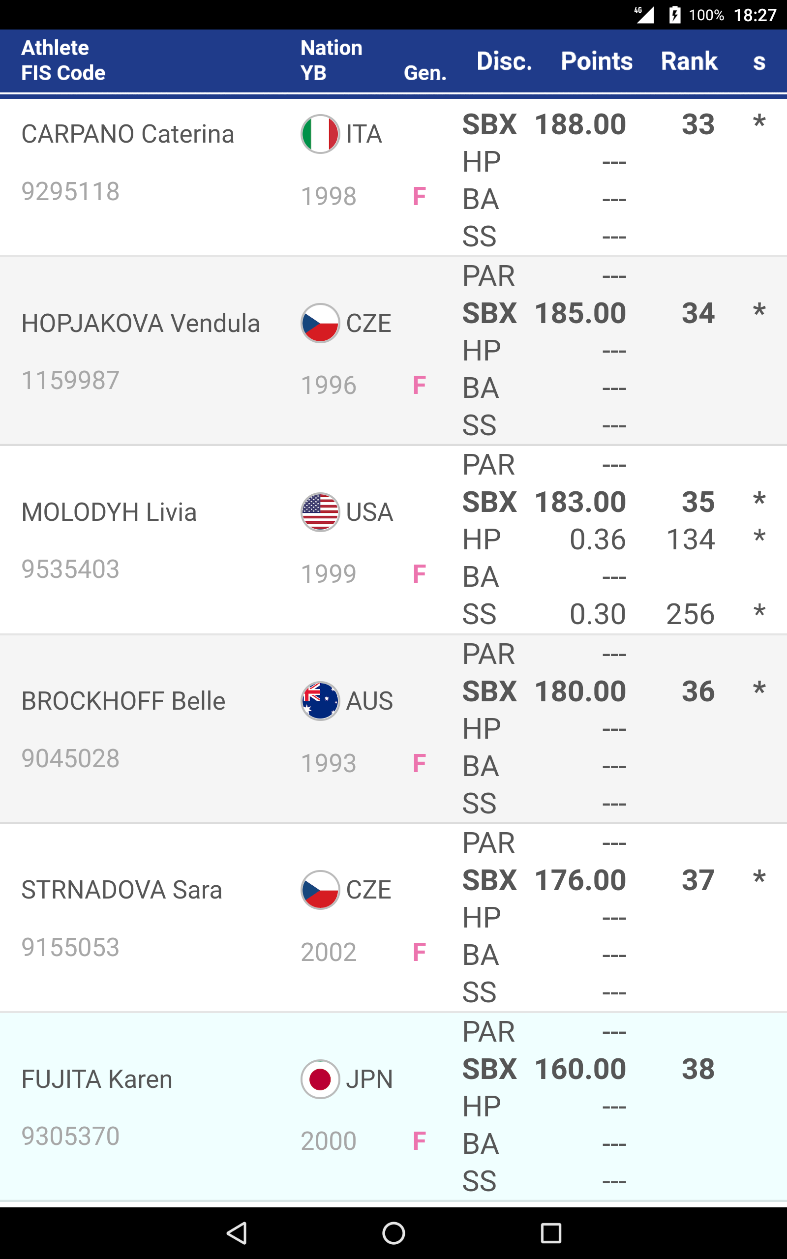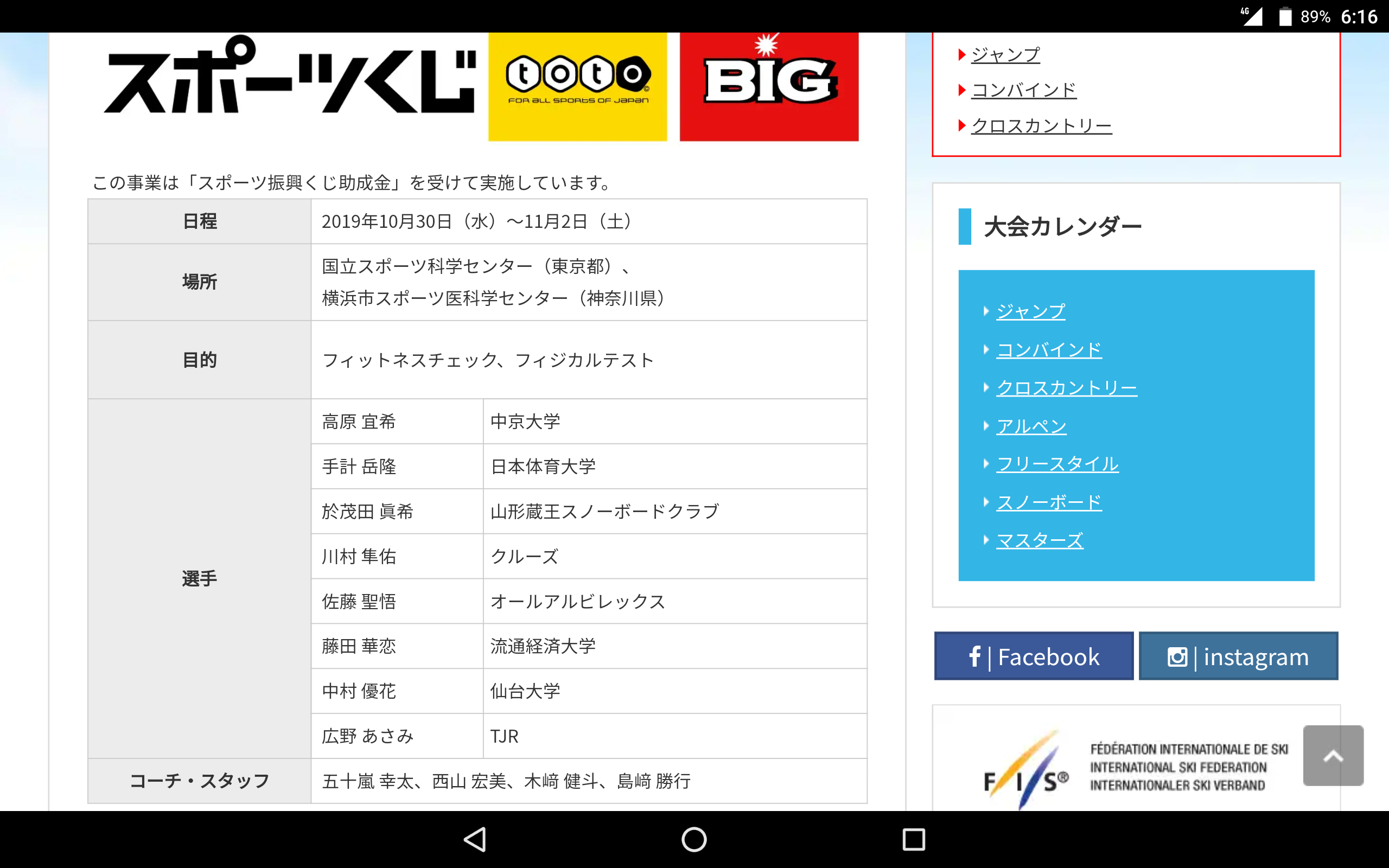 国際スキー連盟のポイントが更新され