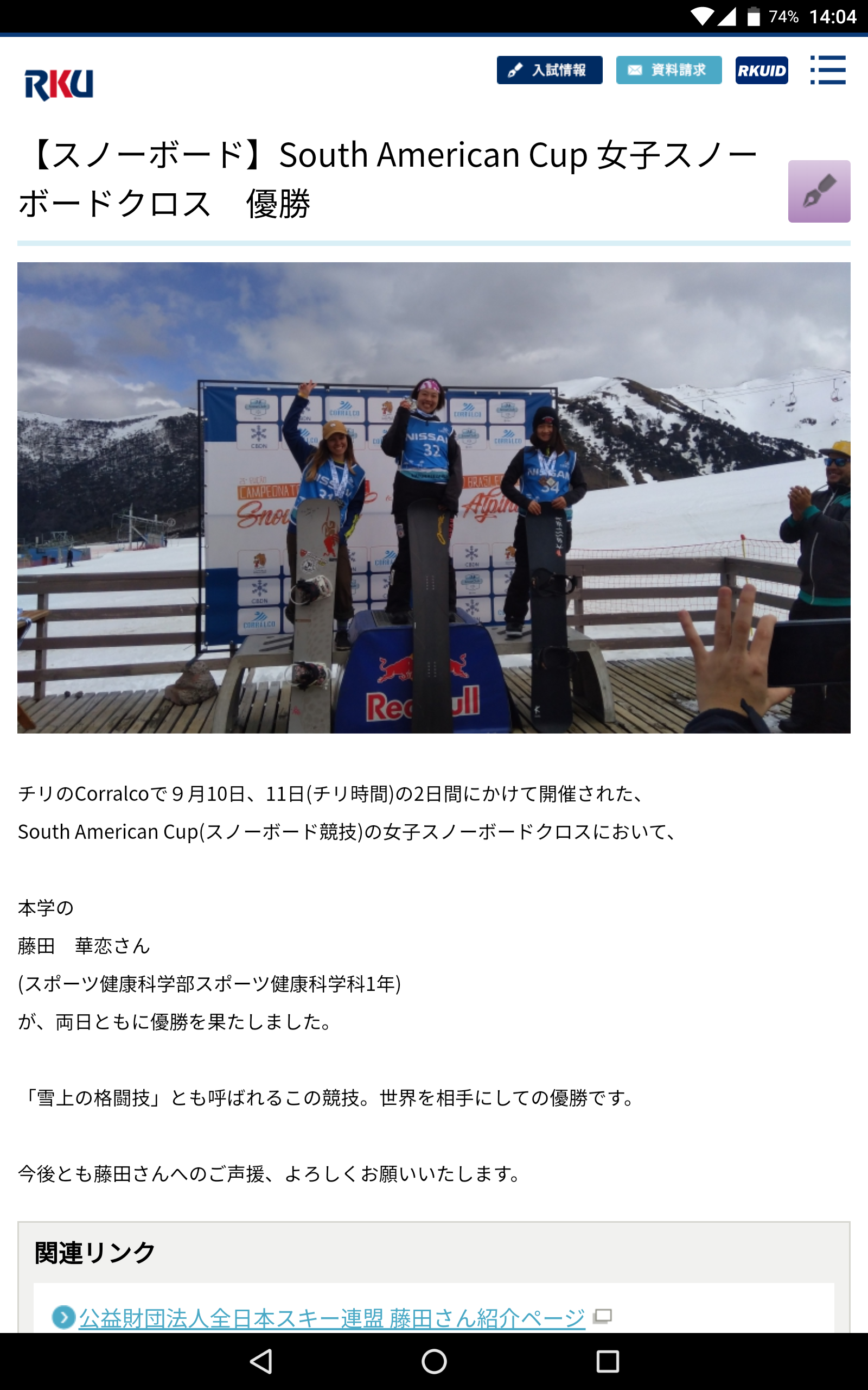 【スノーボード】South American Cup 女子スノーボードクロス 優勝