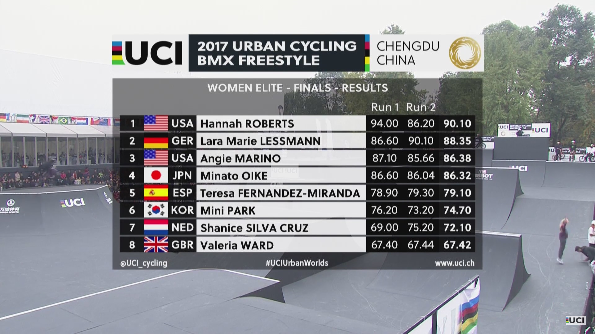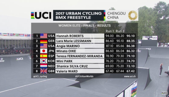 UCI BMX FREESTYLE PARK WORLD CUP RESULTS WOMEN : FINALE