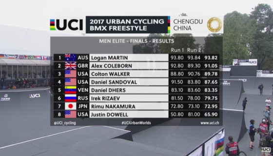 UCI BMX FREESTYLE PARK WORLD CUP RESULTS
