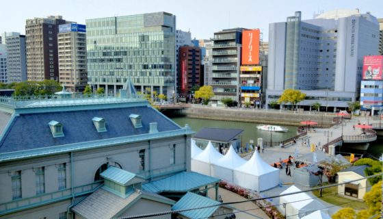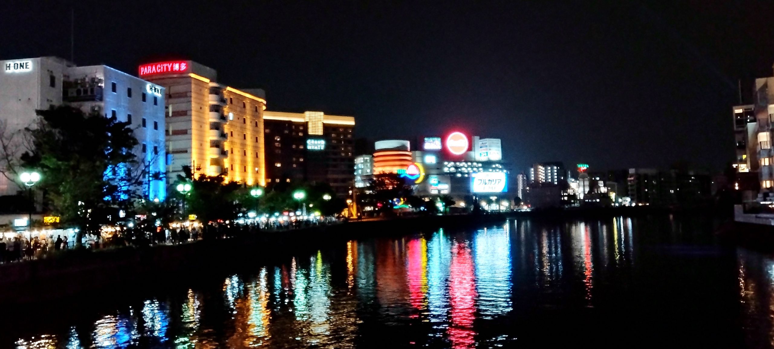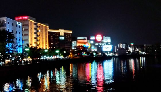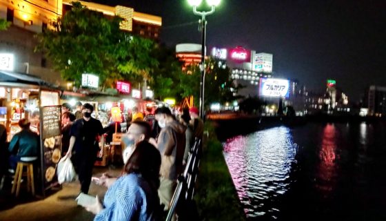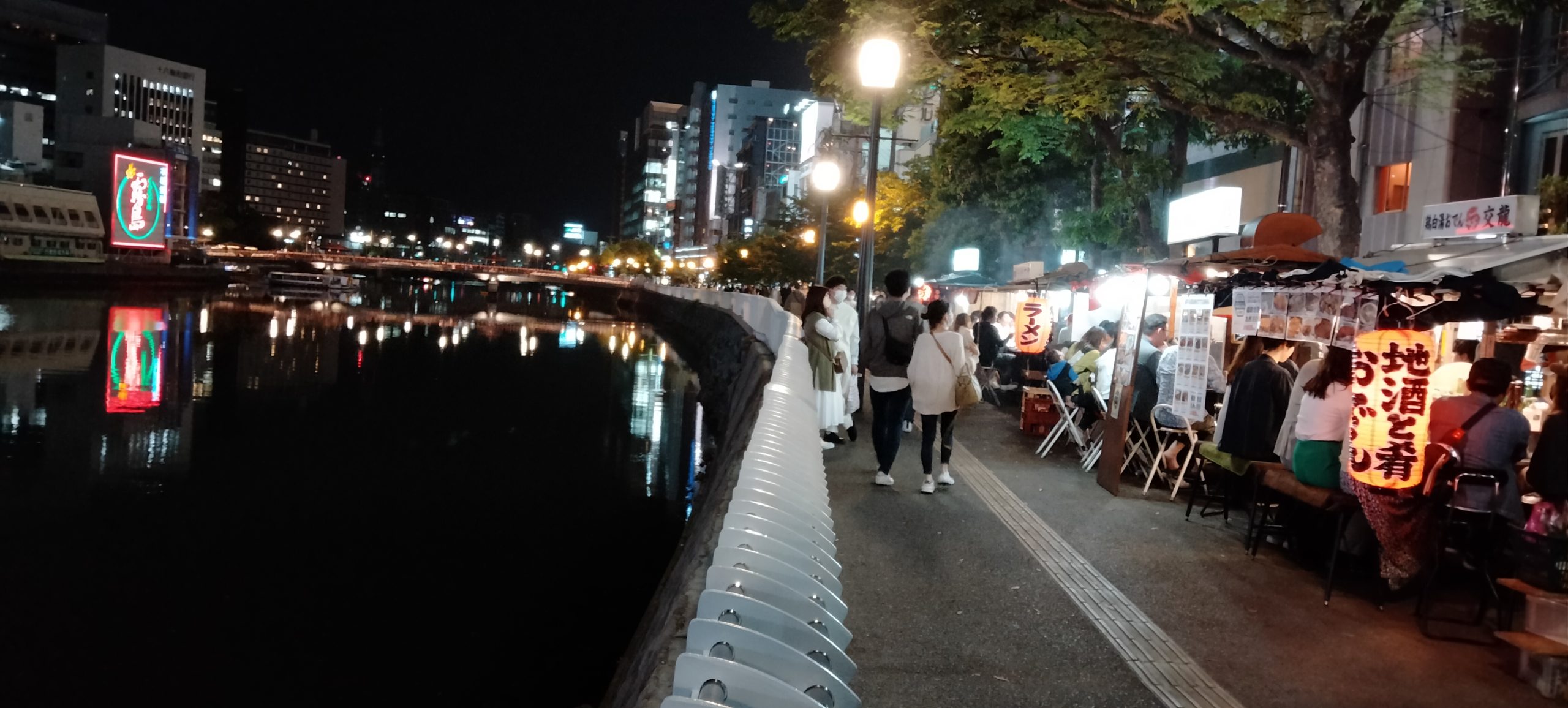 那珂川沿いの屋台街。