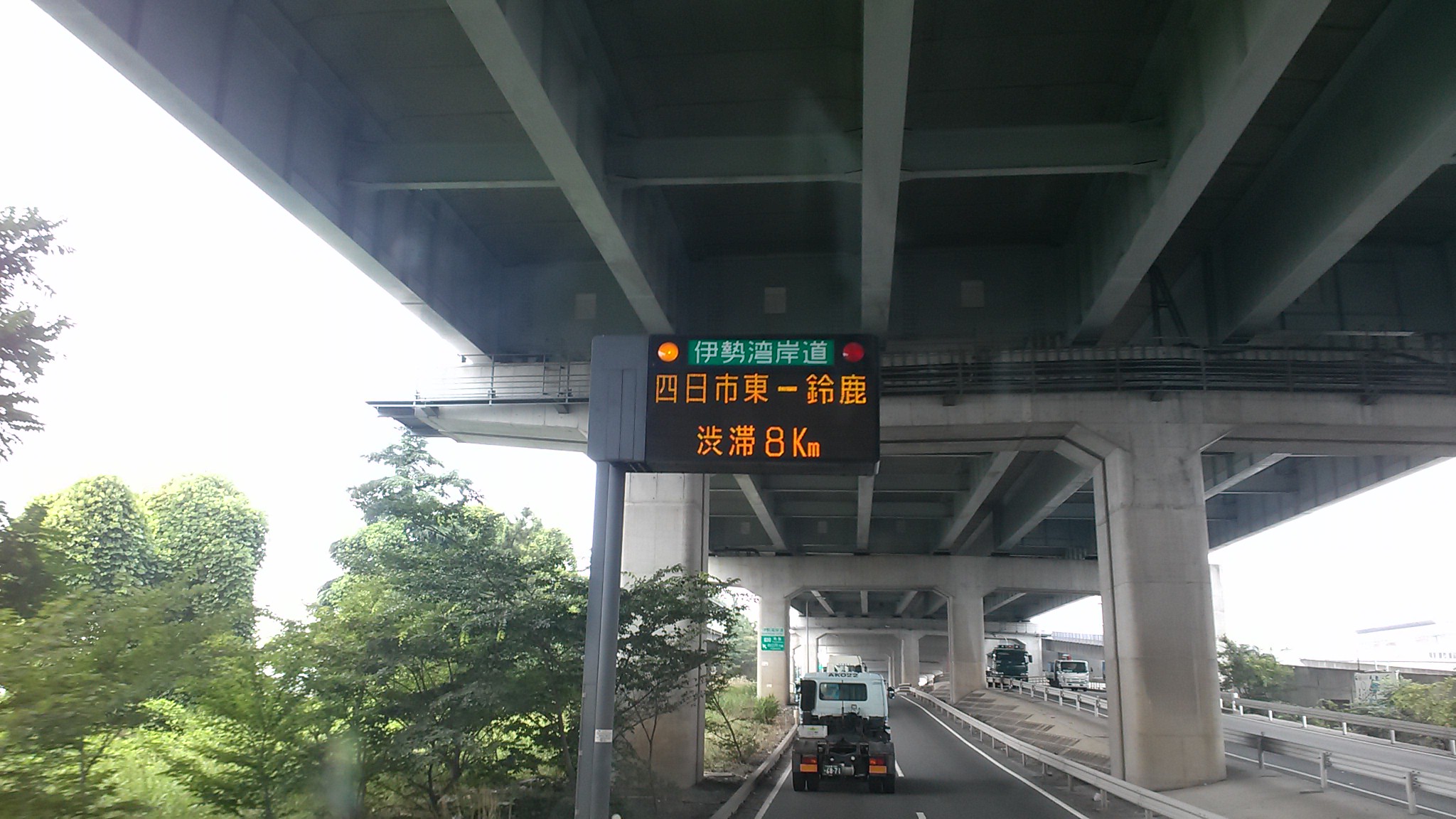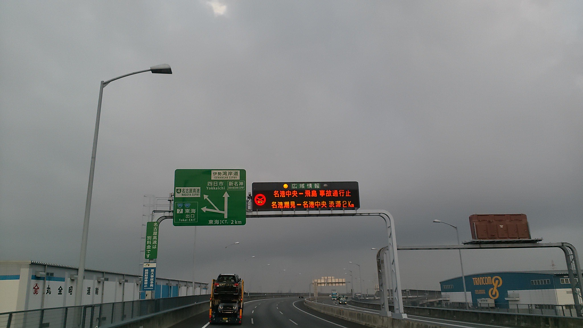 伊勢湾岸に入ると下りる場所で事故の表示。