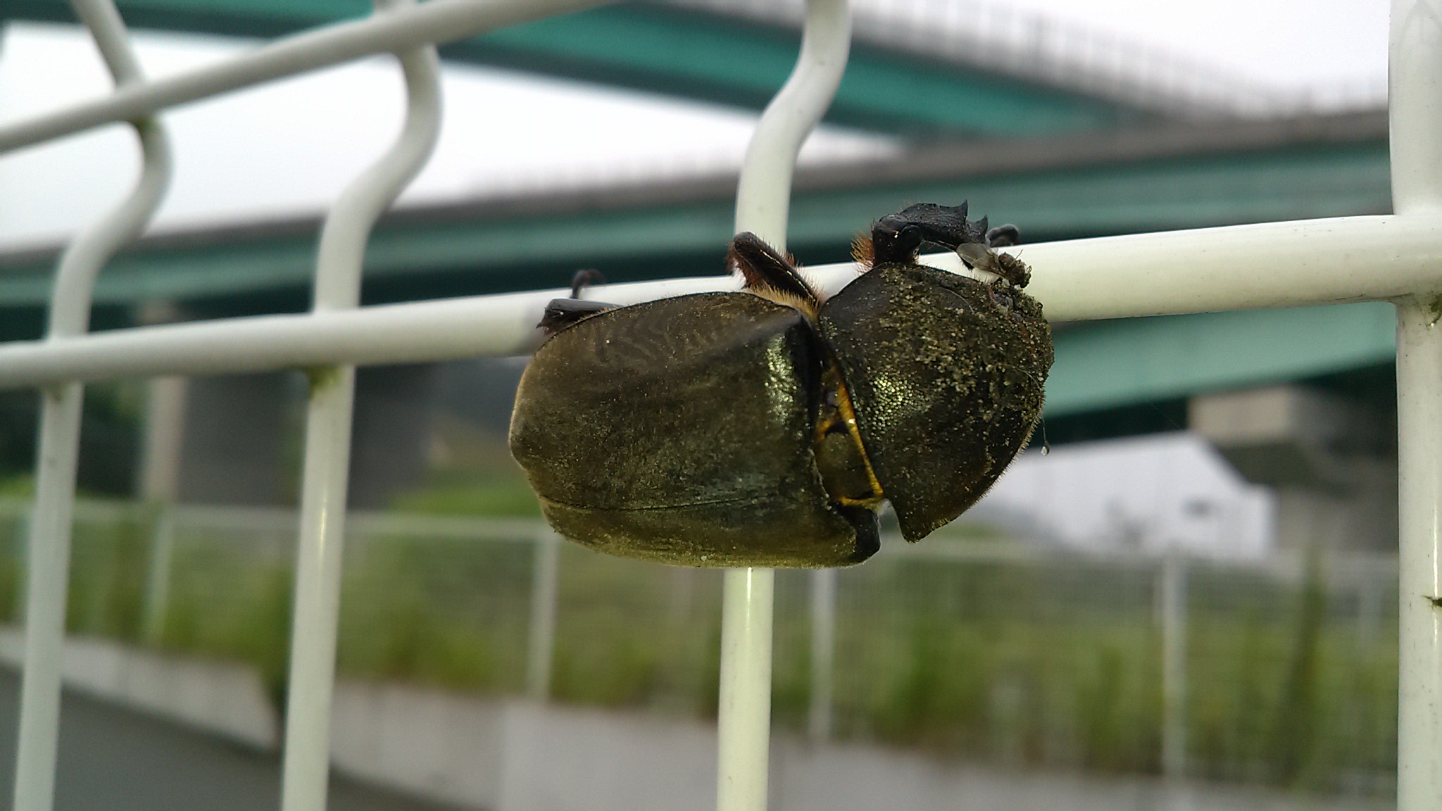 メスのカブトムシも生活が大変なのかアスファルトに転がっていた。