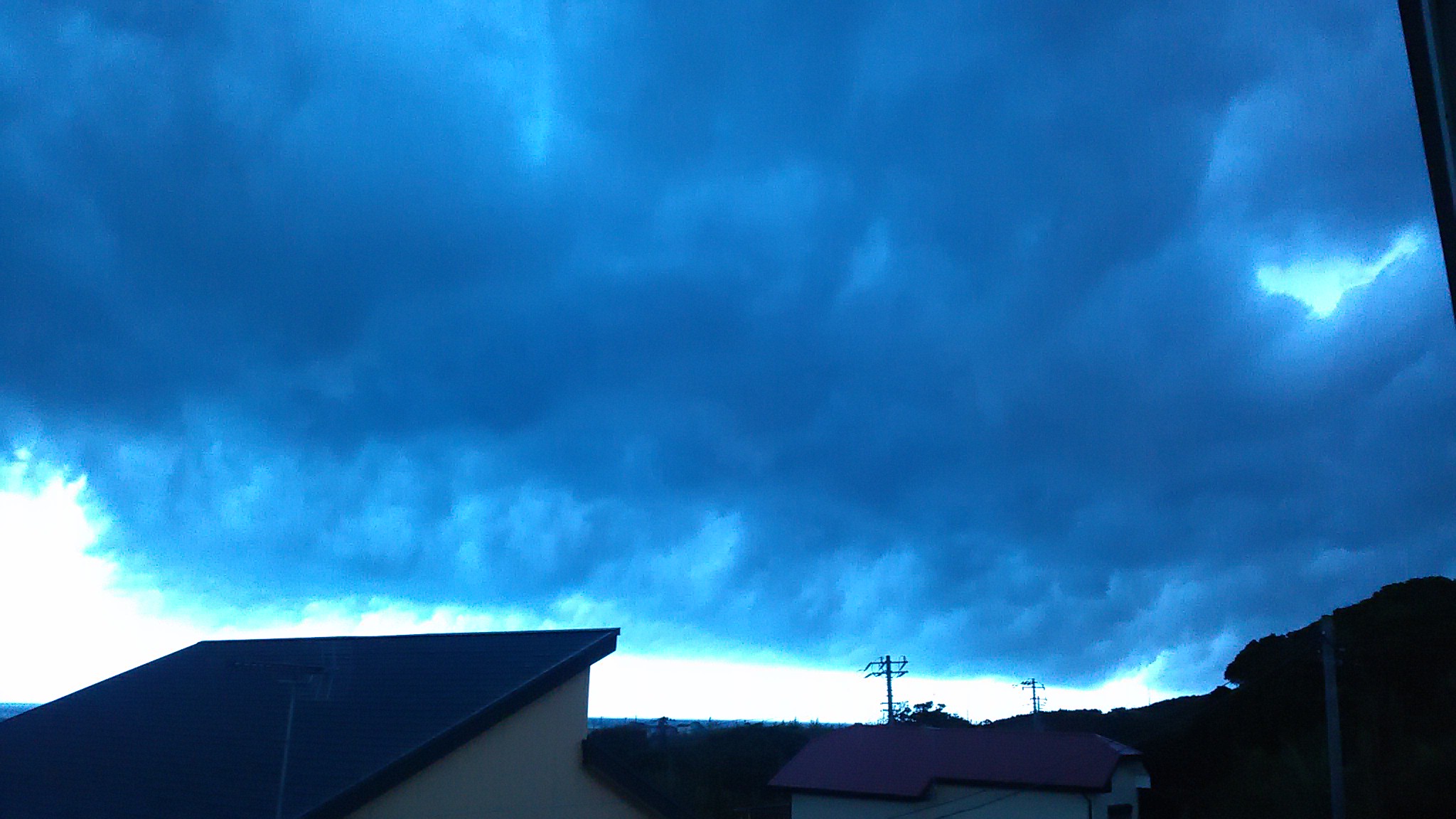 暗くなる前に北東が吹き出し雷雨。