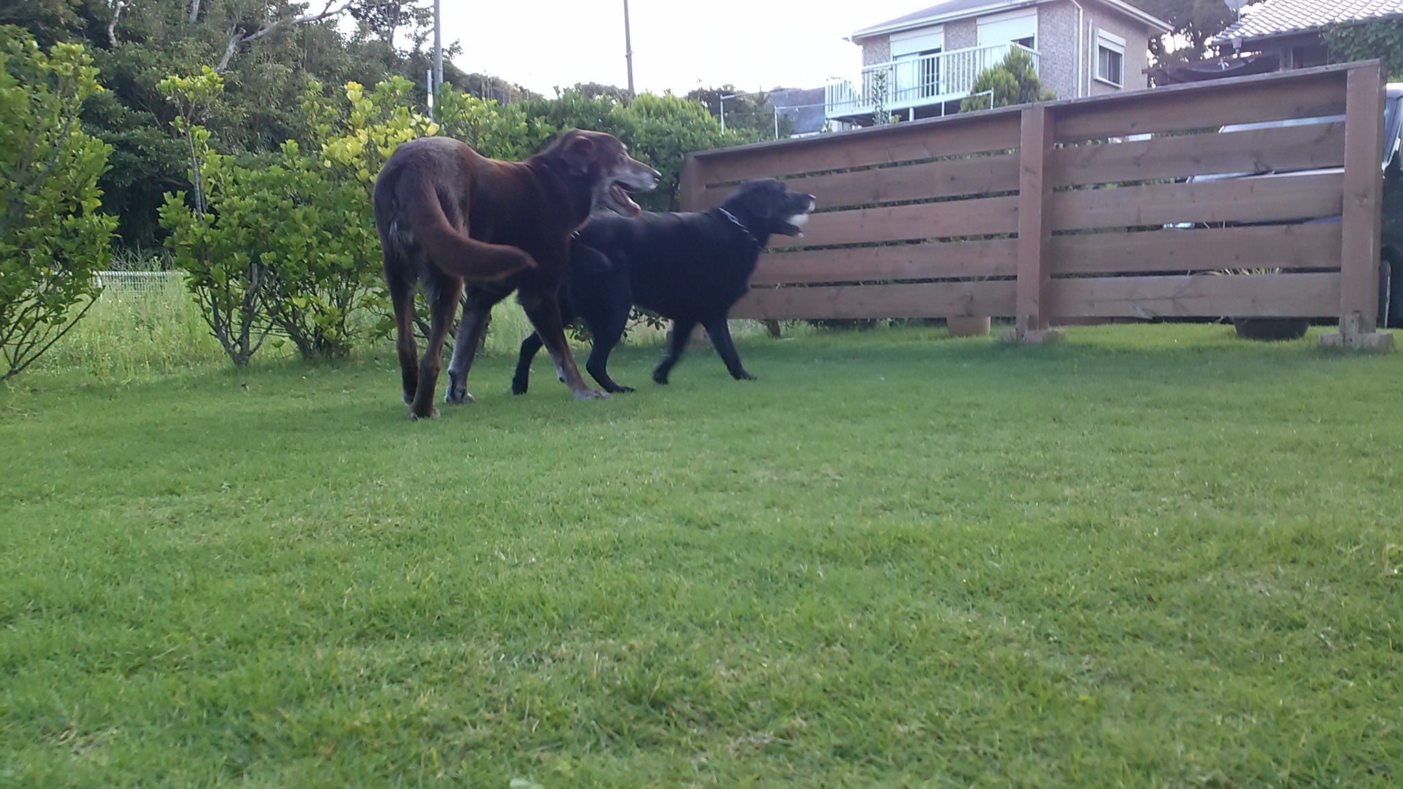 庭でボール遊び。