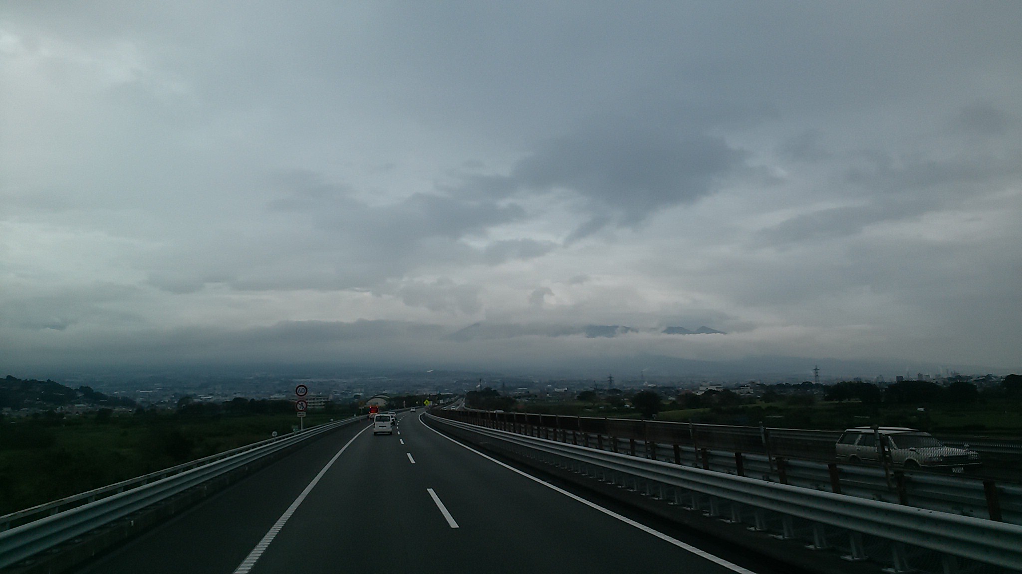 富士山は雲に隠れて見えない。