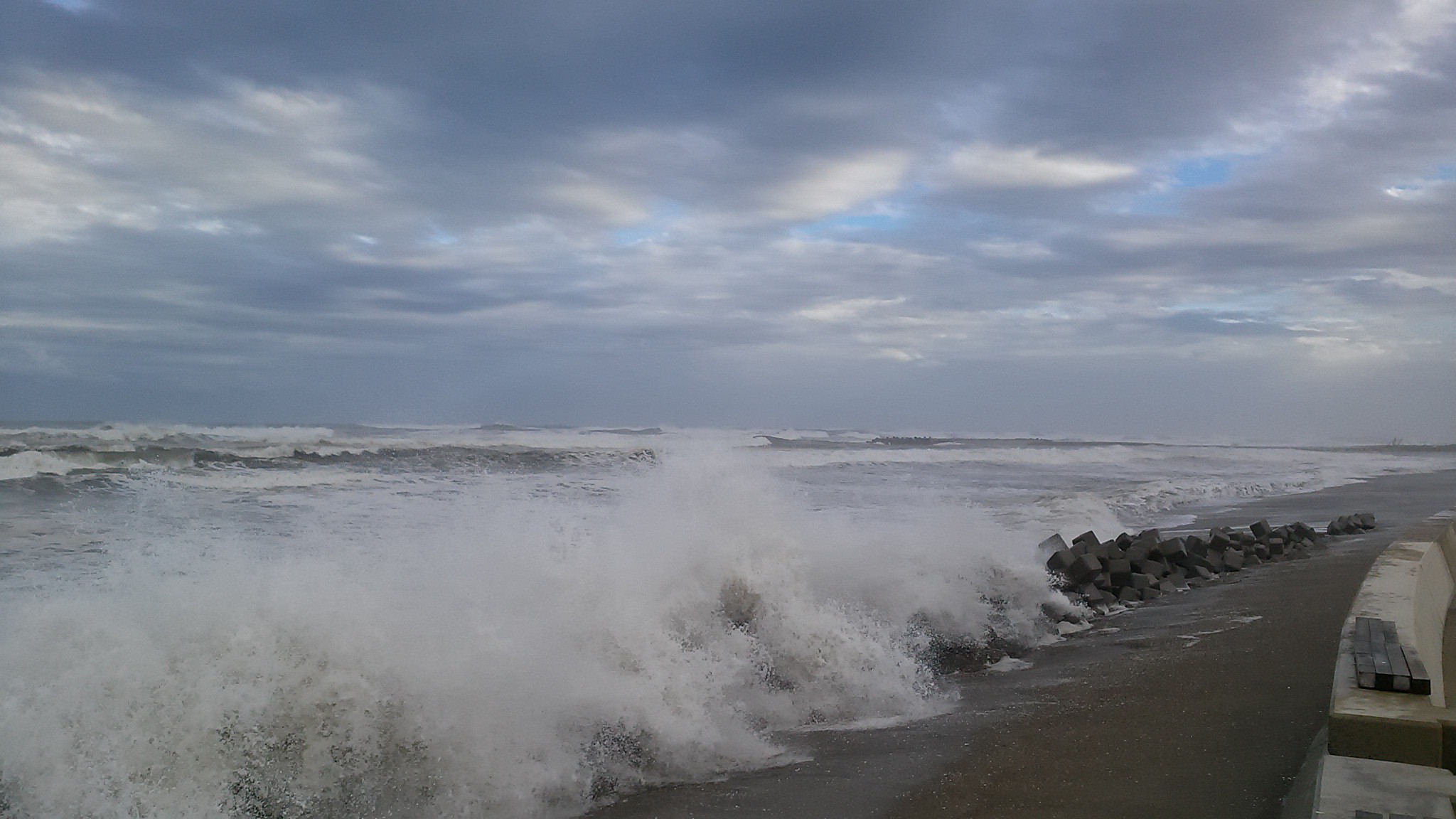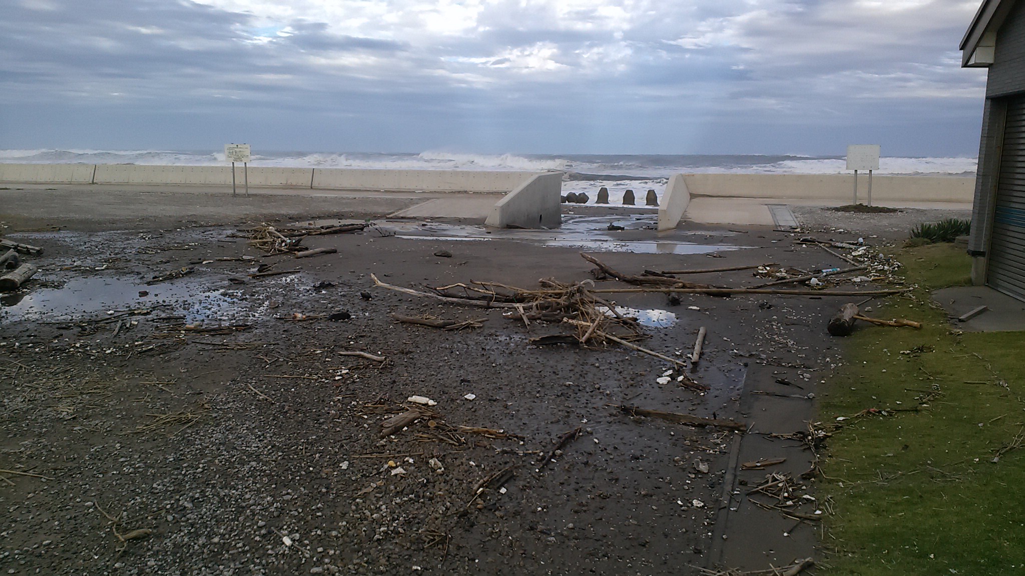 津波と同じように瓦礫が堤防を越えている。