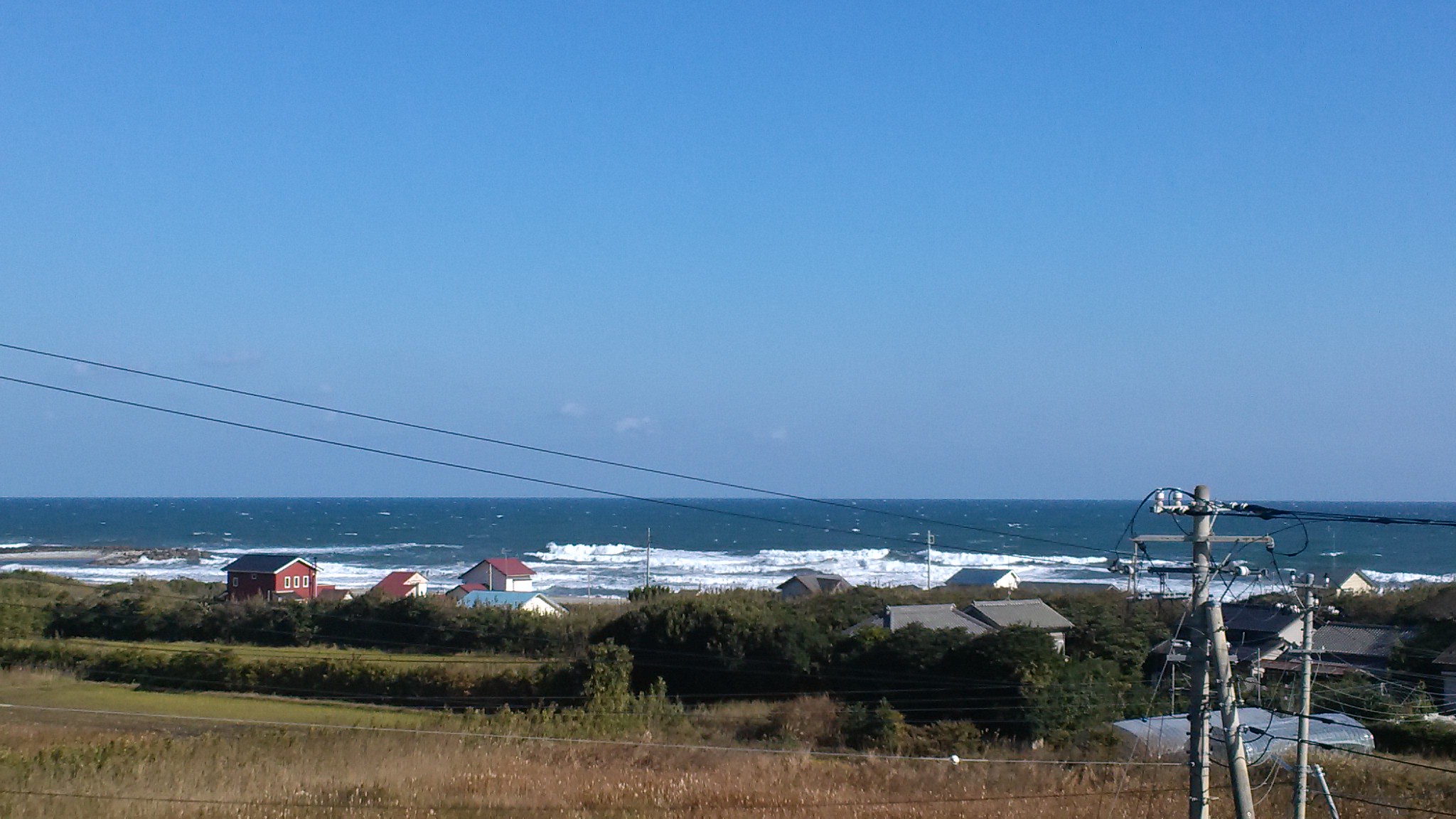 天気予報が当たって風がまた強くなって前面白波。