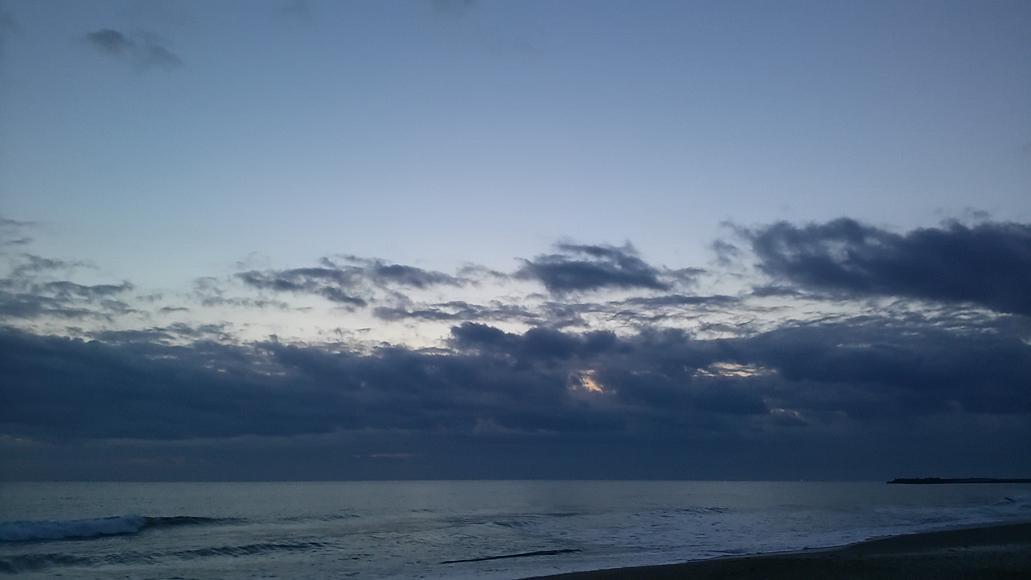 今朝は曇り空で朝日は見えない。