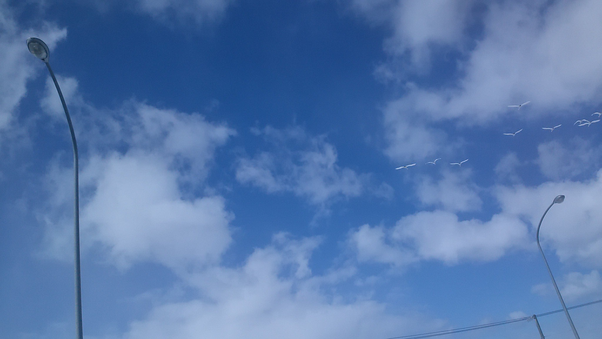 走行してると白鳥の群れが飛んでいた。