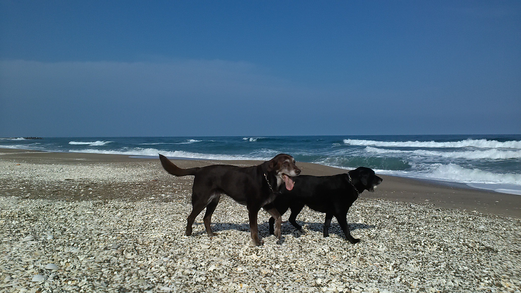 入りたそうに海を見ていた。