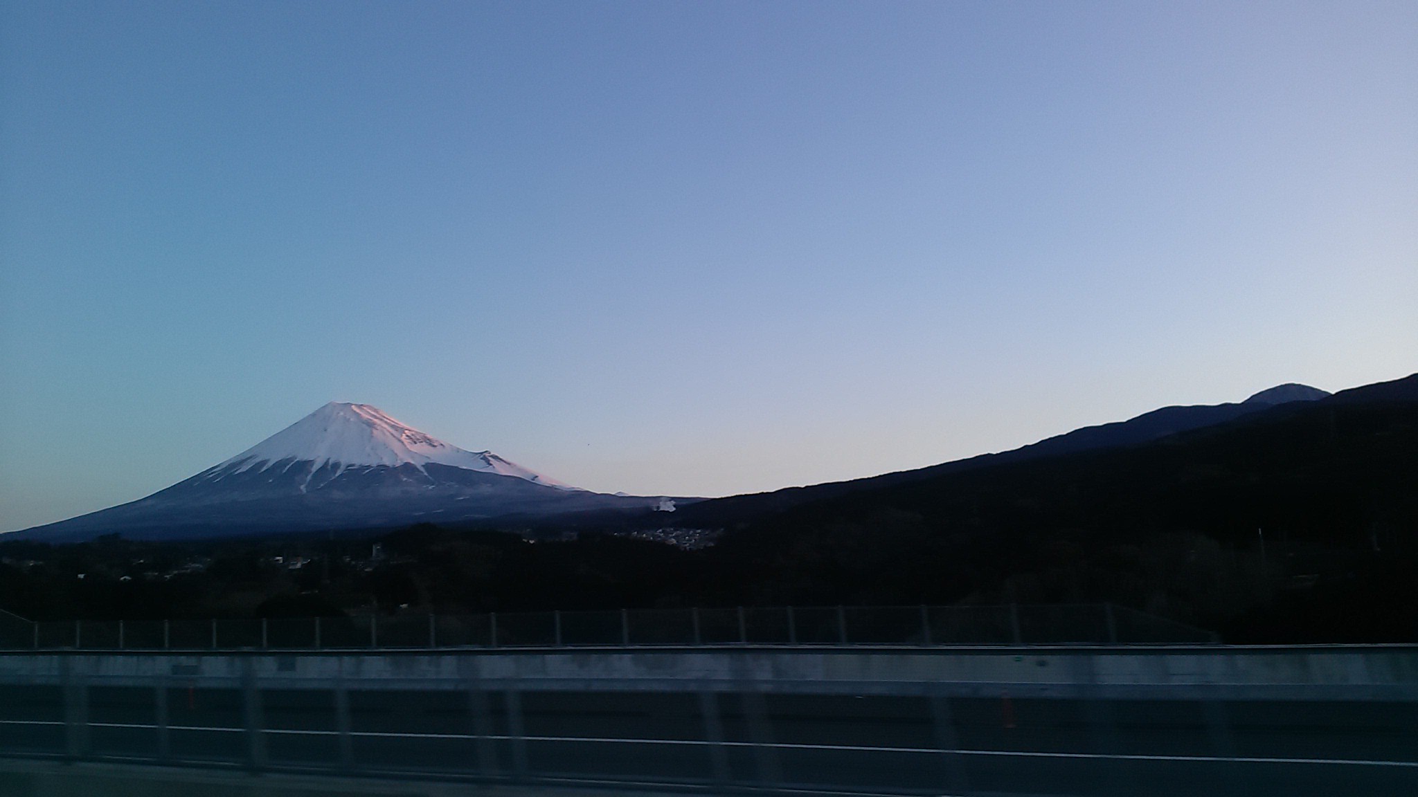 富士山が朝焼けで綺麗だった。