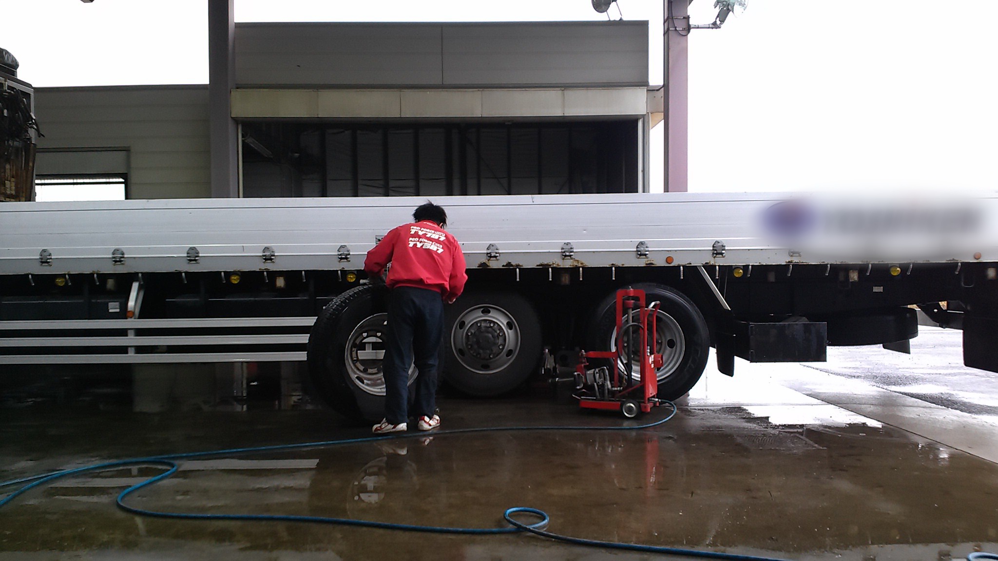 雨なのに外で積まされ