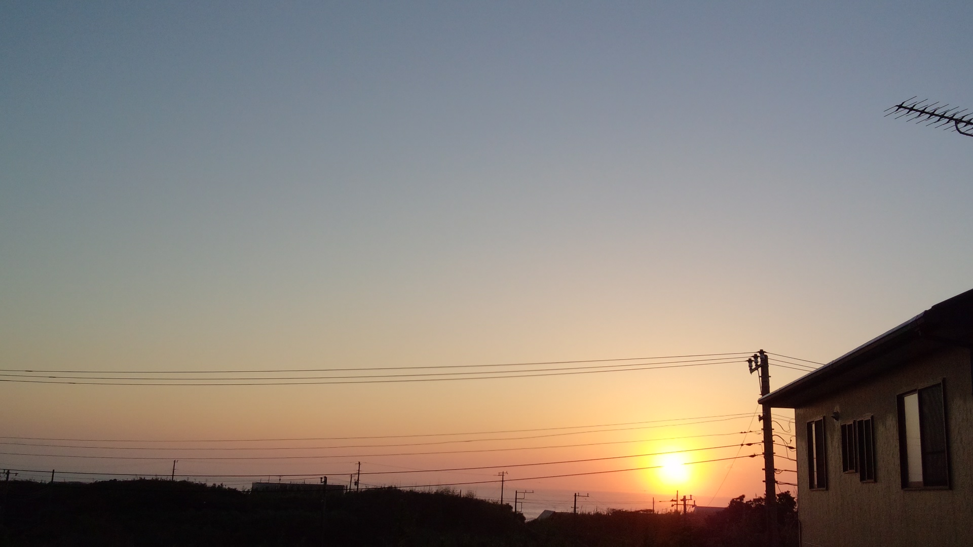 連休最終日も朝日が綺麗。
