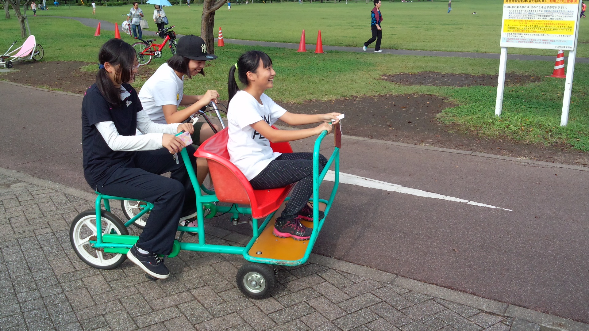 変な自転車で公園をサイクリング。