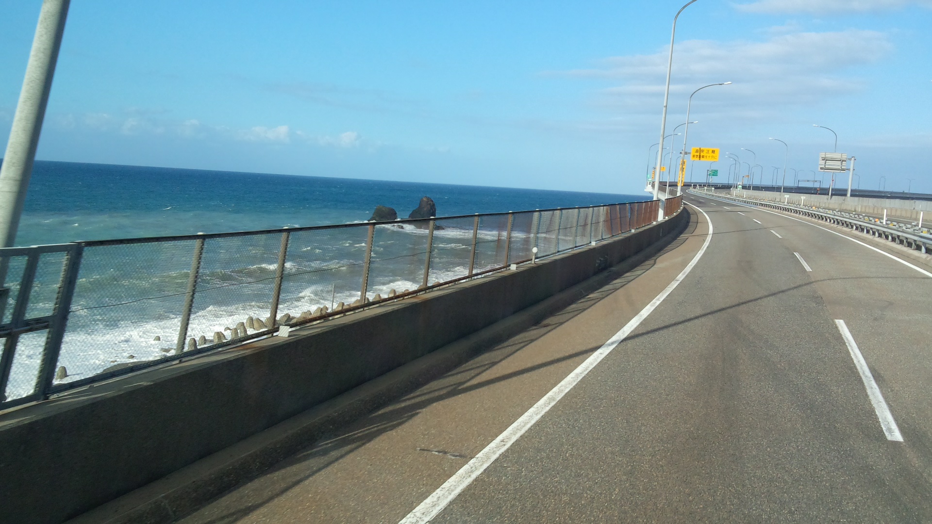 シャワーを浴びて晴天の日本海をドライブ。