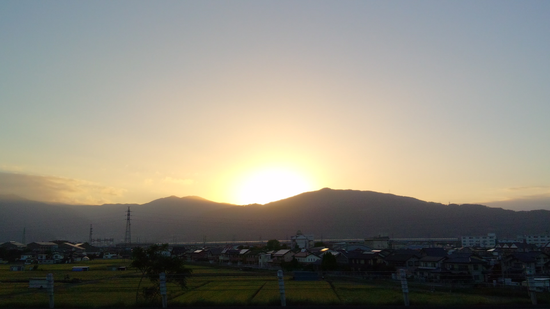 白馬の山に太陽が沈んで