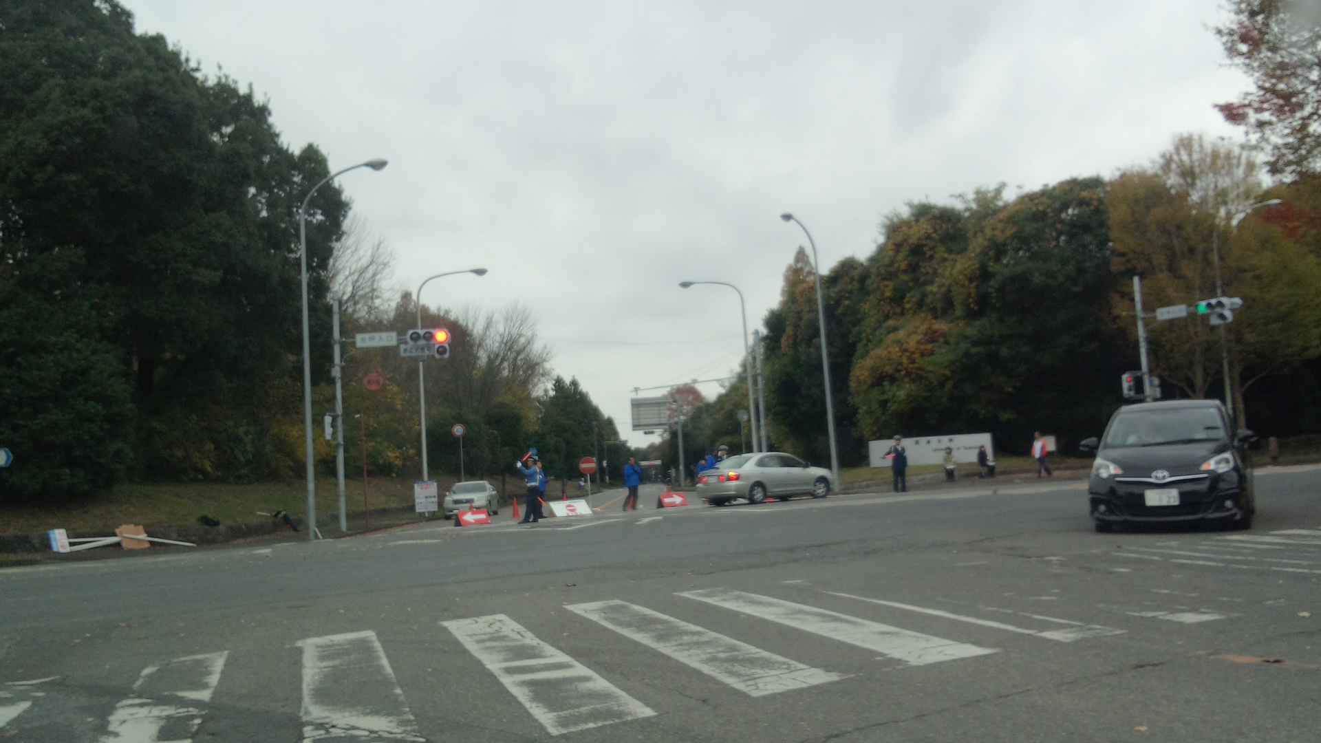 途中で何やら通行止め。