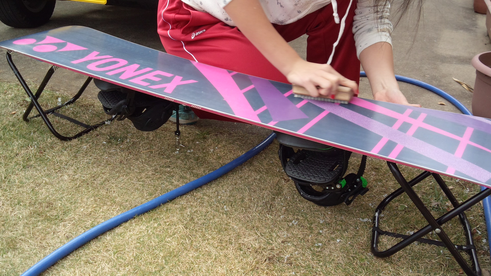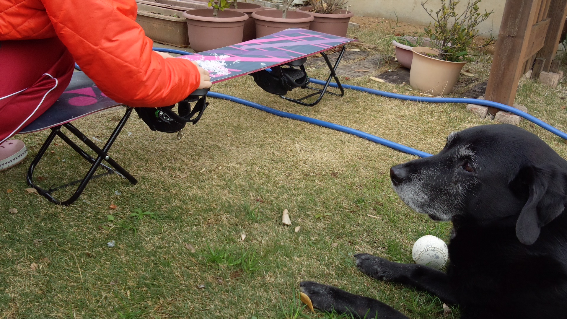 チビがスノーボードを仕上げてる間に