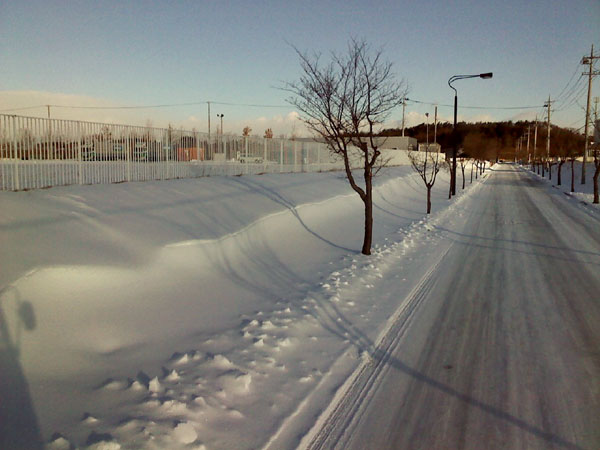 明け方にさらに雪が降り路面はツルツル。