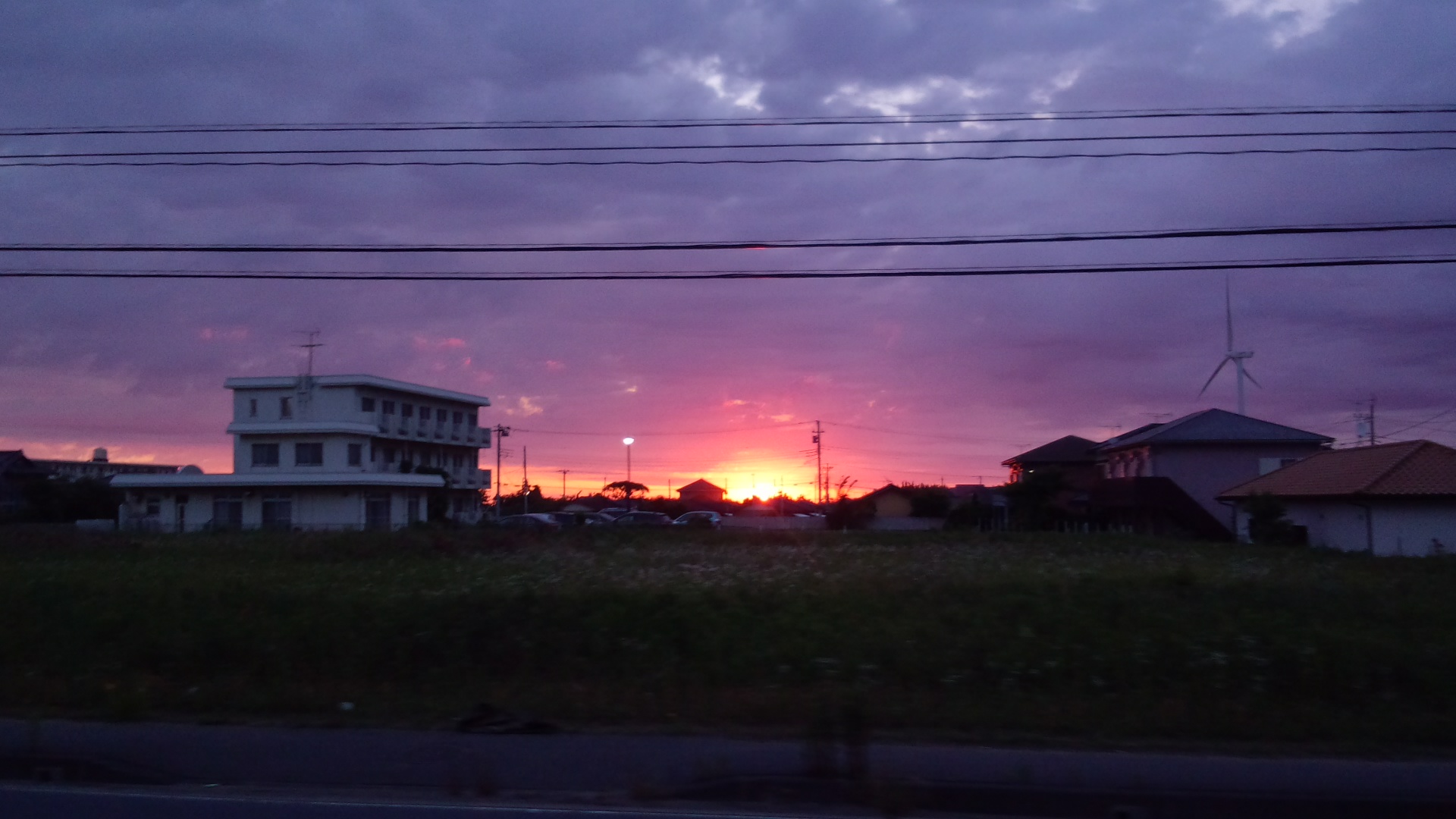 今朝は海が燃えているような朝焼け。
