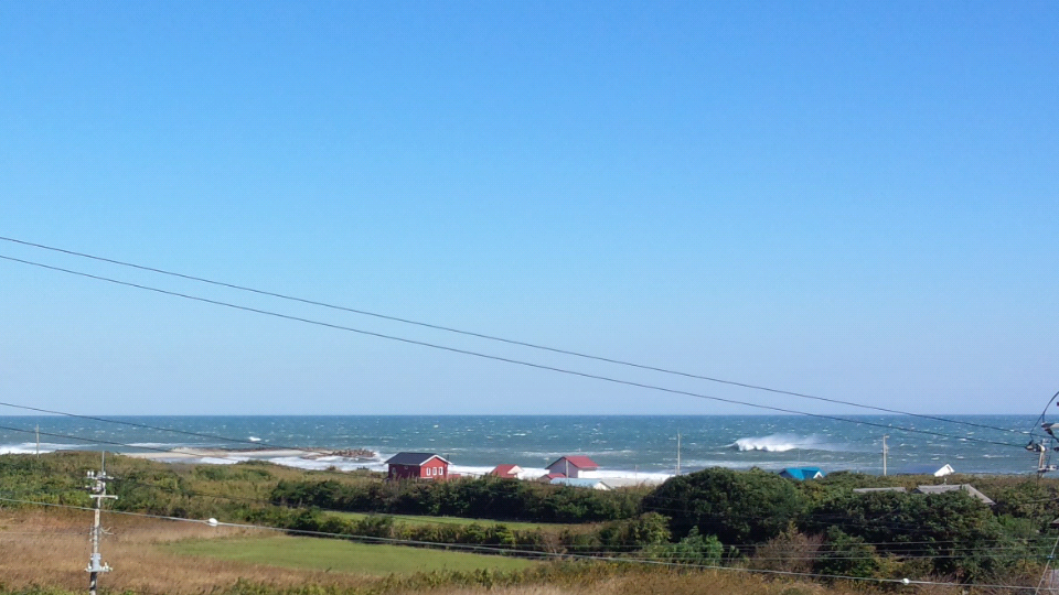台風一過で晴天の珍しい北西の爆風。