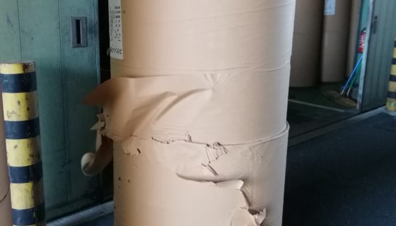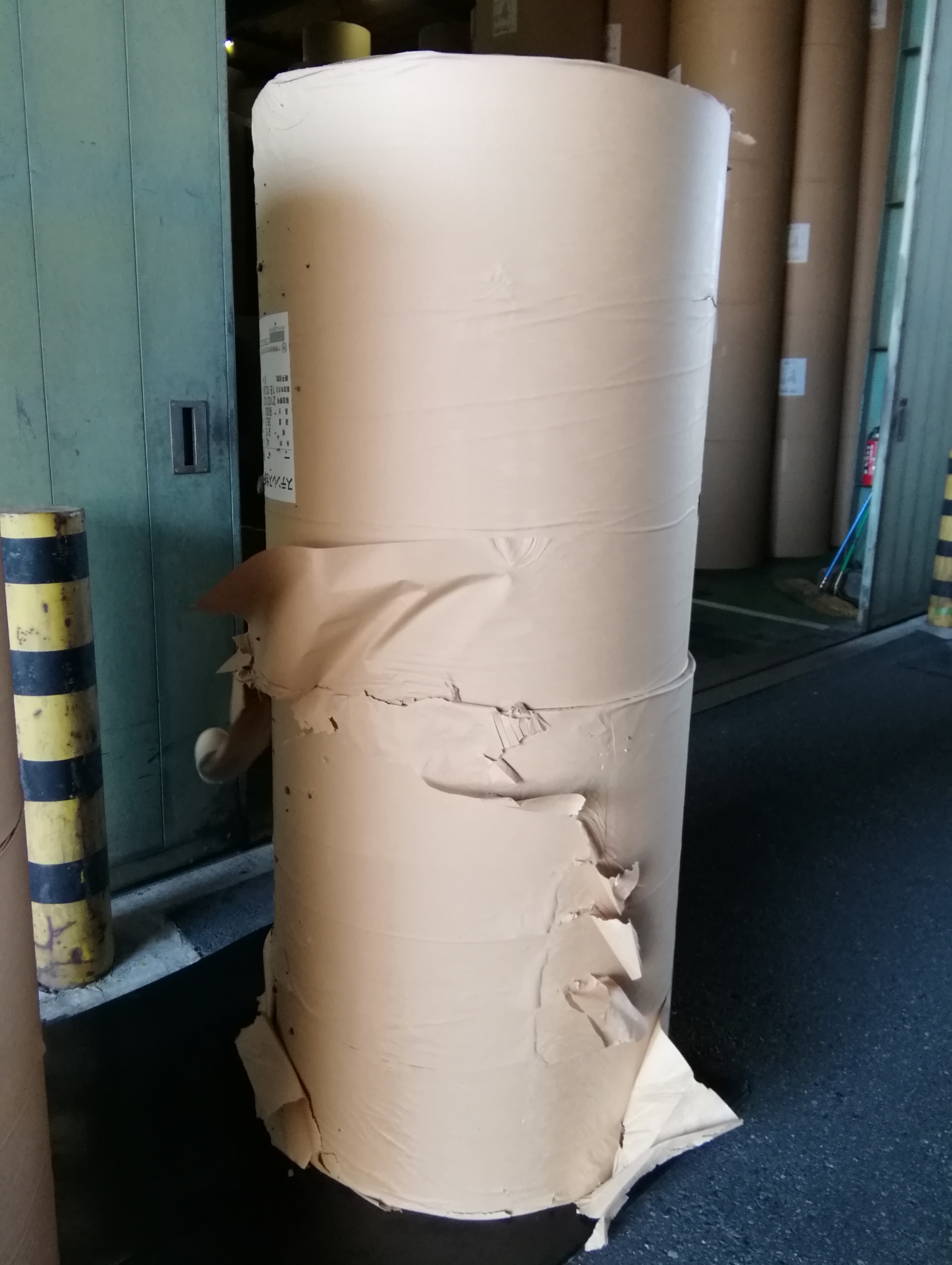 二段目に乗せたロールが横滑るをして道路へ落下した。