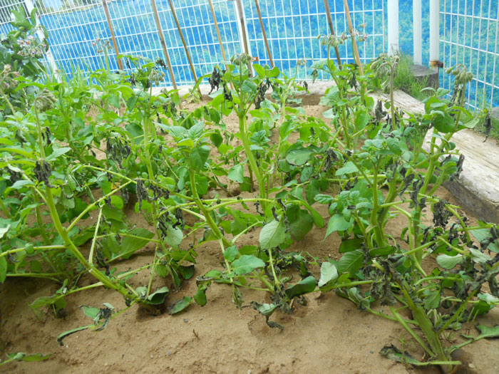じゃがいもの葉は千切れてしまい