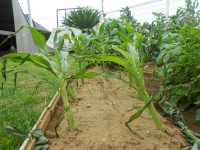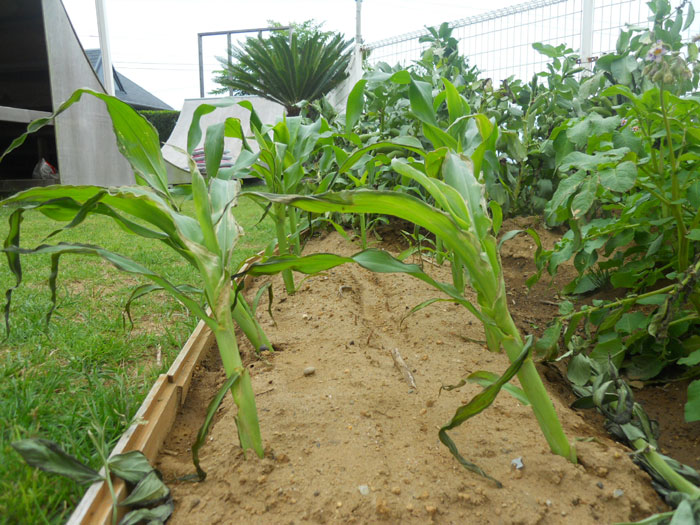 とうもろこしは傾いてしまった。