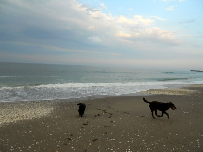 涼しくなってから海へ散歩。