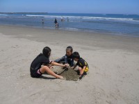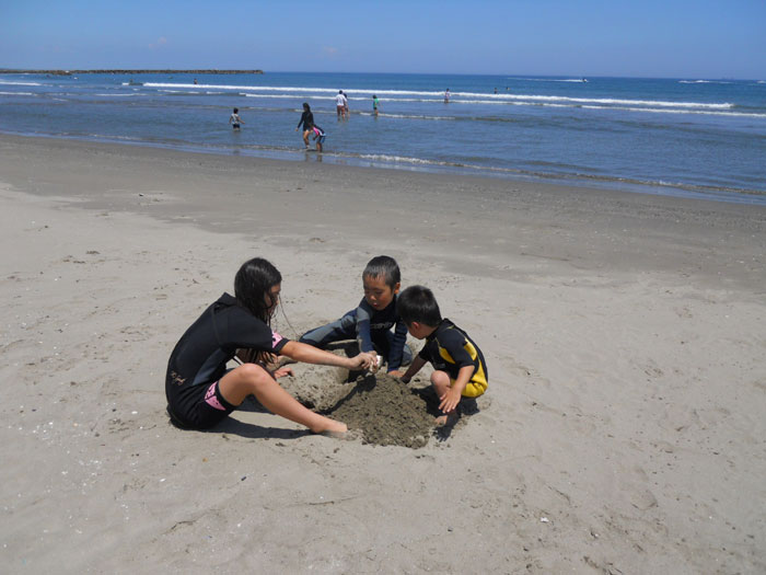 冷えた体を温めるのに砂遊び。