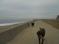 海まで歩くとダラダラな波。