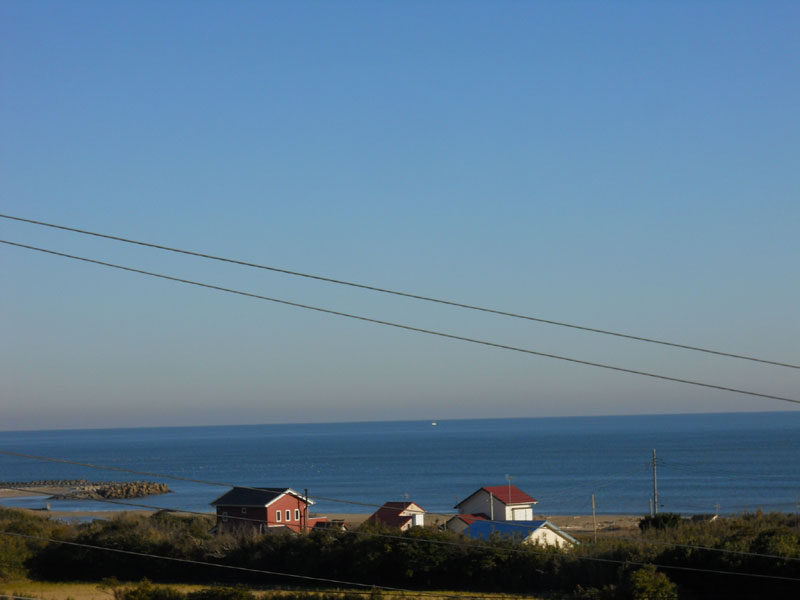 2階から見る海はフラット。