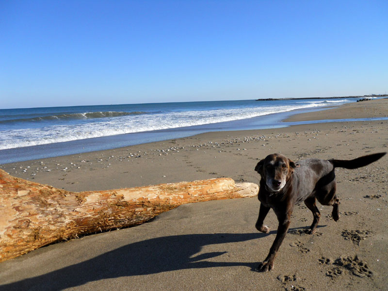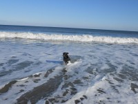 グラッシーは暖かいから海へダッシュ。