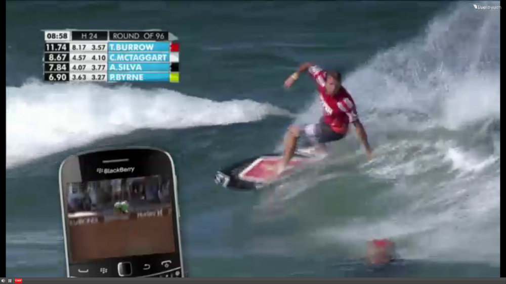 ライブ映像に携帯画面が出てきてスケートのライブも観れる。