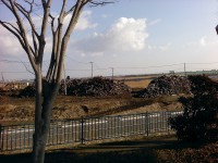仙台空港には瓦礫の山がまだまだ片付いていない。