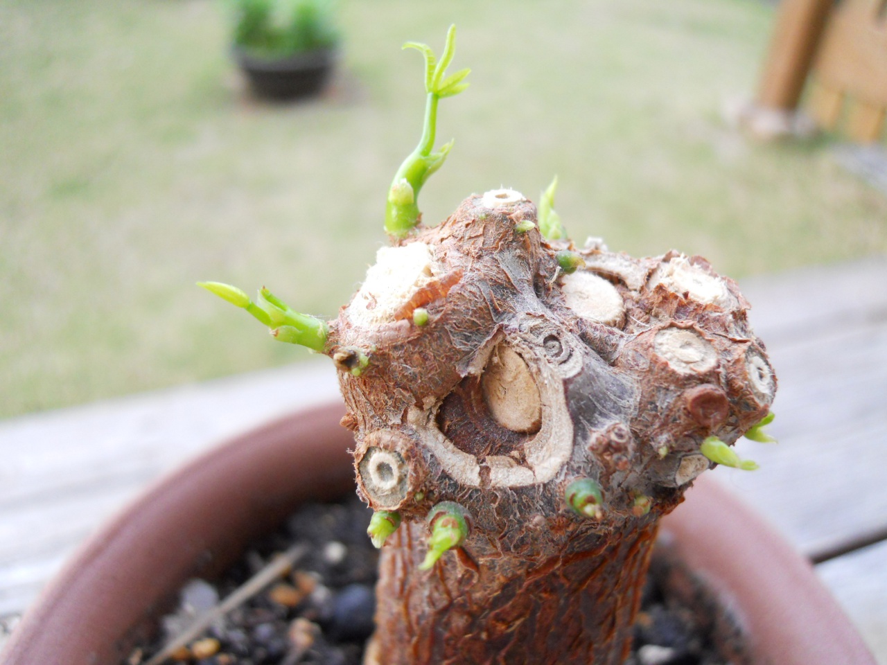 選定しておいたパキラは新芽が出てきた。