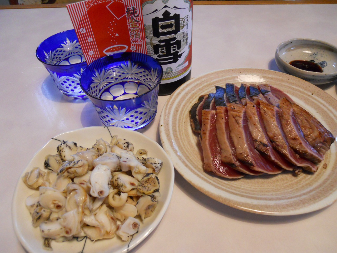 ツブガイと金粉入りの日本酒。