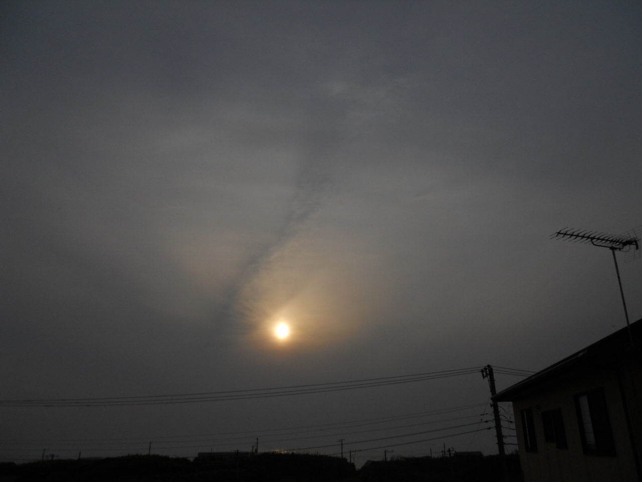 薄く太陽が見えるけどはっきりしない。
